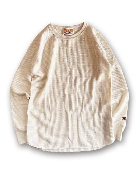 薄手ながらも保湿と伸縮性に優れ、4本針のフラットシーマで縫製し、裾はウェーヴがかった仕様になっってます。着心地良く、ルームウェアとしてはもちろん、アウターやTシャツとの相性も抜群です。ラグランスリーブで、横にゆとりのあるサイジングになっております。左袖にSD Logoが刺繍されたいます。レイヤードも楽しめる一着。