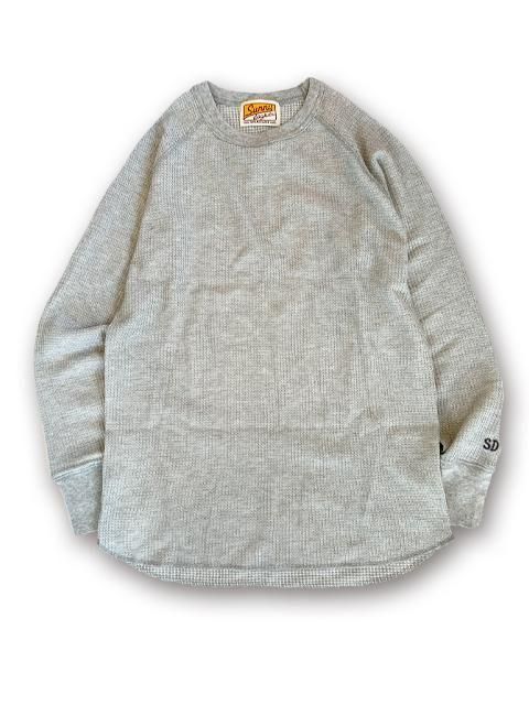 薄手ながらも保湿と伸縮性に優れ、4本針のフラットシーマで縫製し、裾はウェーヴがかった仕様になっってます。着心地良く、ルームウェアとしてはもちろん、アウターやTシャツとの相性も抜群です。ラグランスリーブで、横にゆとりのあるサイジングになっております。左袖にSD Logoが刺繍されたいます。レイヤードも楽しめる一着。
