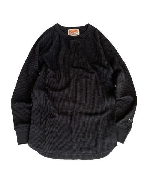 薄手ながらも保湿と伸縮性に優れ、4本針のフラットシーマで縫製し、裾はウェーヴがかった仕様になっってます。着心地良く、ルームウェアとしてはもちろん、アウターやTシャツとの相性も抜群です。ラグランスリーブで、横にゆとりのあるサイジングになっております。左袖にSD Logoが刺繍されたいます。レイヤードも楽しめる一着。